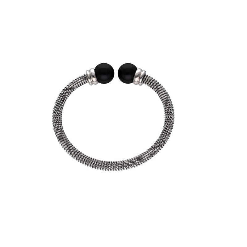 Браслет Majorica из коллекции TENDER выполнен из высококачественной стали. Нежные вставки из органического черного жемчуга диаметром 12мм. дополняют твердость металла.
