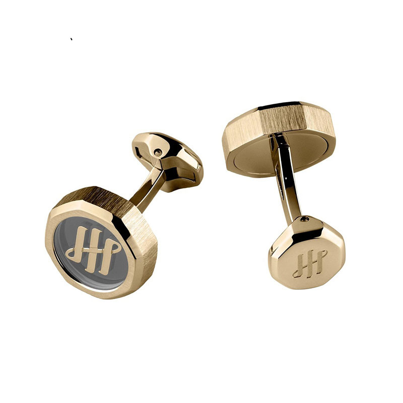 Запонки OTTO, восьмиугольные, IP покрытие позолотой, сапфировое стекло, гравировка Montegrappa.